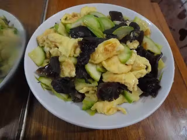 最後加入炒好的雞蛋,攪拌均勻,讓雞蛋吸收一下西葫蘆炒出的湯汁即可。