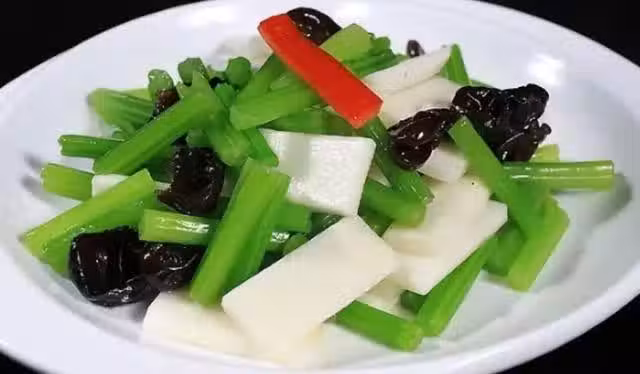 芹菜炒白蘿蔔,清脆碧綠,色澤靚麗,營養爽口,製作此菜關鍵的一步是用花椒油熗鍋,增加椒香味,簡單又好吃。