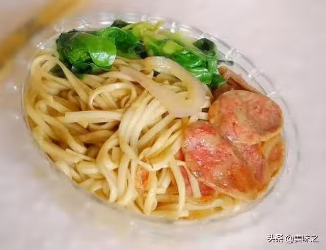 掛麵適量、小白菜適量、臘腸1根、洋蔥少許、菜籽油2茶匙、鹽少許、胡椒少許、蒸魚醬油少許。