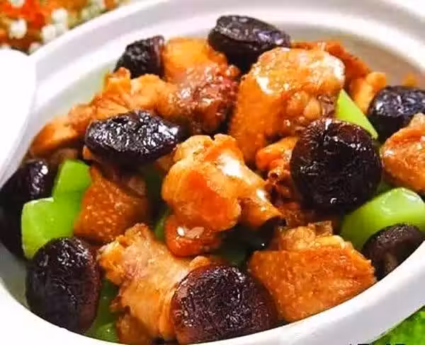 配料:雞、香菇、油、鹽、醬油、料酒、姜、八角