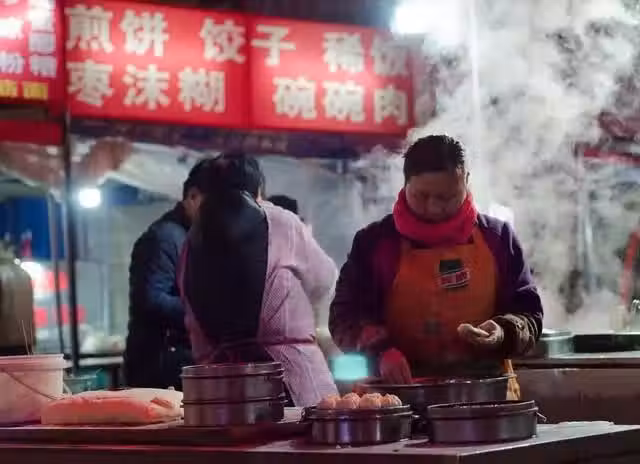每天早晨四點多天還不亮,我和丈夫就去早市上買來菜和各種肉食。