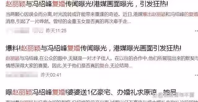 值得一提的是,離婚後馮紹峰一直保持著積極的態度。他在綜藝節目中表達了對這段感情的懷念,可惜沒能挽回。有網友猜測,兩人之所以離婚,可能是因為馮紹峰的母親不喜歡趙麗穎。然而離婚後,馮紹峰的狀態有一段時間並不好,甚至有一些抑鬱的傾向。因此,為了補償趙麗穎,馮媽為她購買了價值1億元的豪宅,並表示願意補辦婚禮,希望得到趙麗穎的原諒,這也讓兩人和好如初。