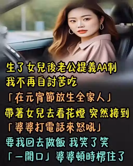 生了女兒後老公提義AA制!我不再自討苦吃「在元宵節放生全家人」帶著女兒去看花燈~ 突然接到「婆婆打電話來怒吼」要我回去做飯,我笑了笑「一開口」婆婆愣住了!!!!!