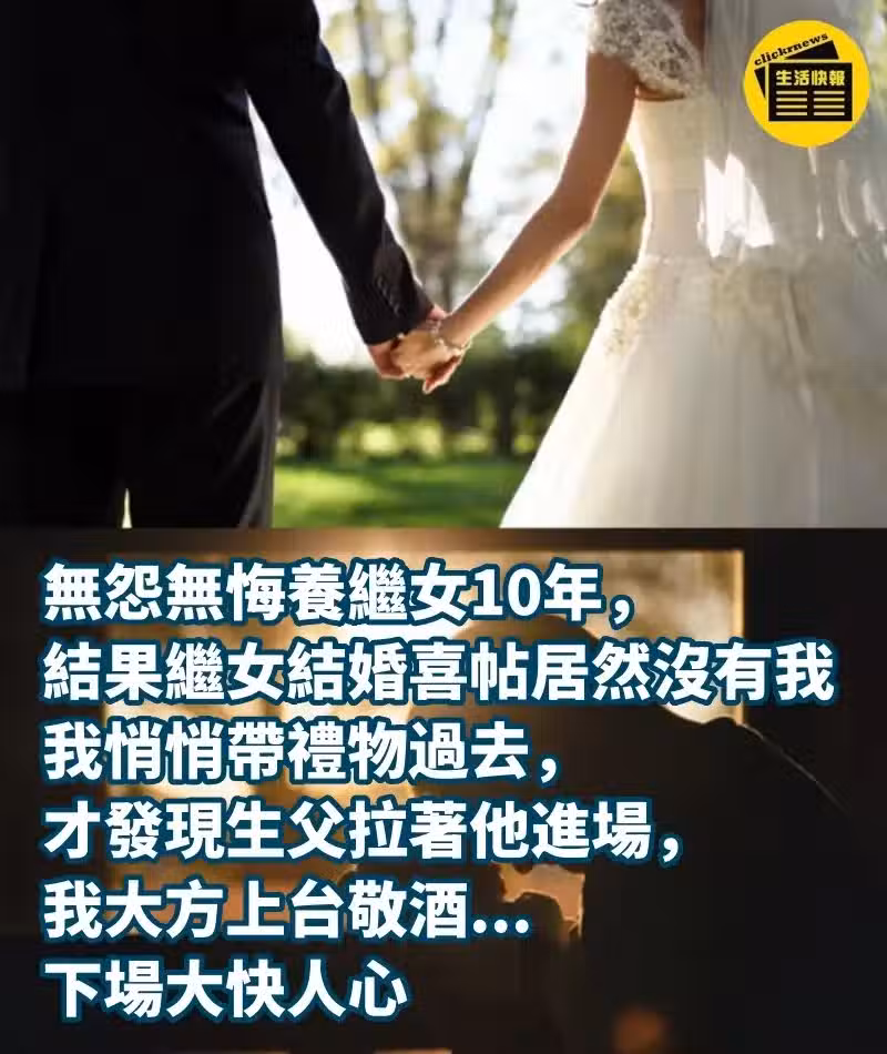 無怨無悔養繼女10年,結果繼女結婚,喜帖居然沒有我,我悄悄帶禮物過去,才發現生父拉著他進場,我大方上台敬酒...下場大快人心