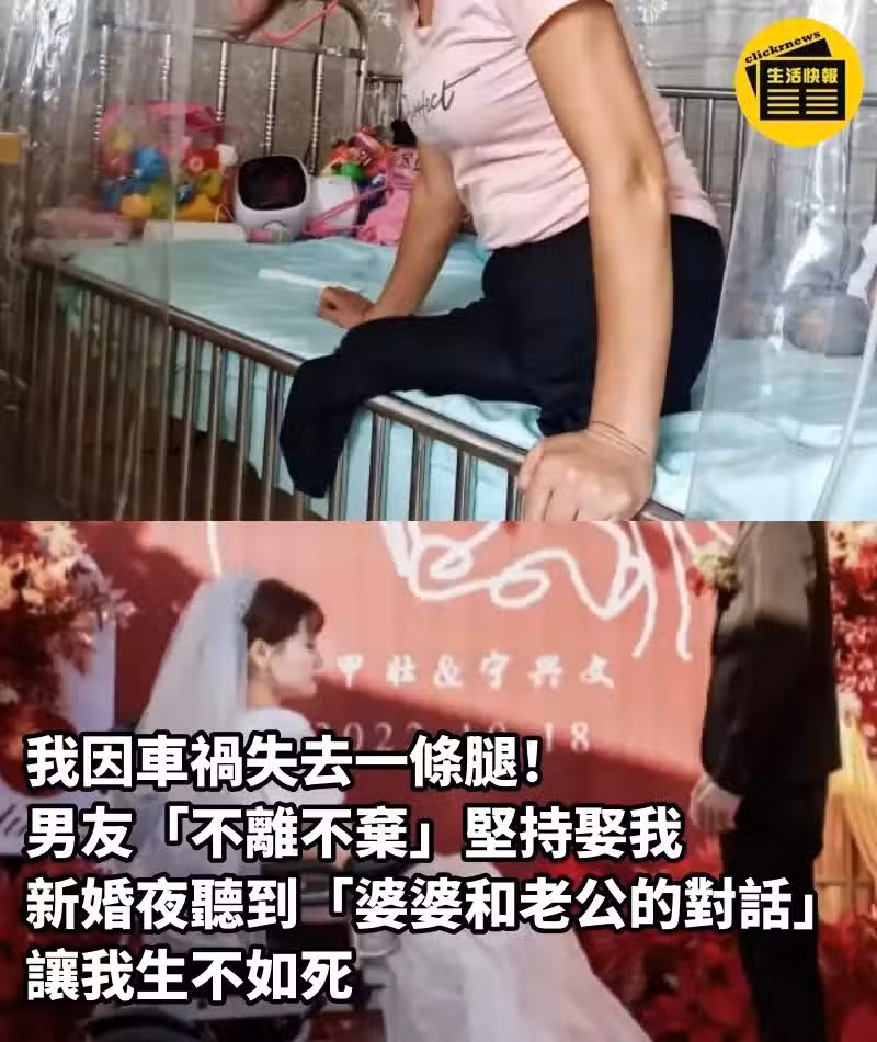 我因車禍失去一條腿!男友「不離不棄」堅持娶我 新婚夜聽到「婆婆和老公的對話」讓我生不如死