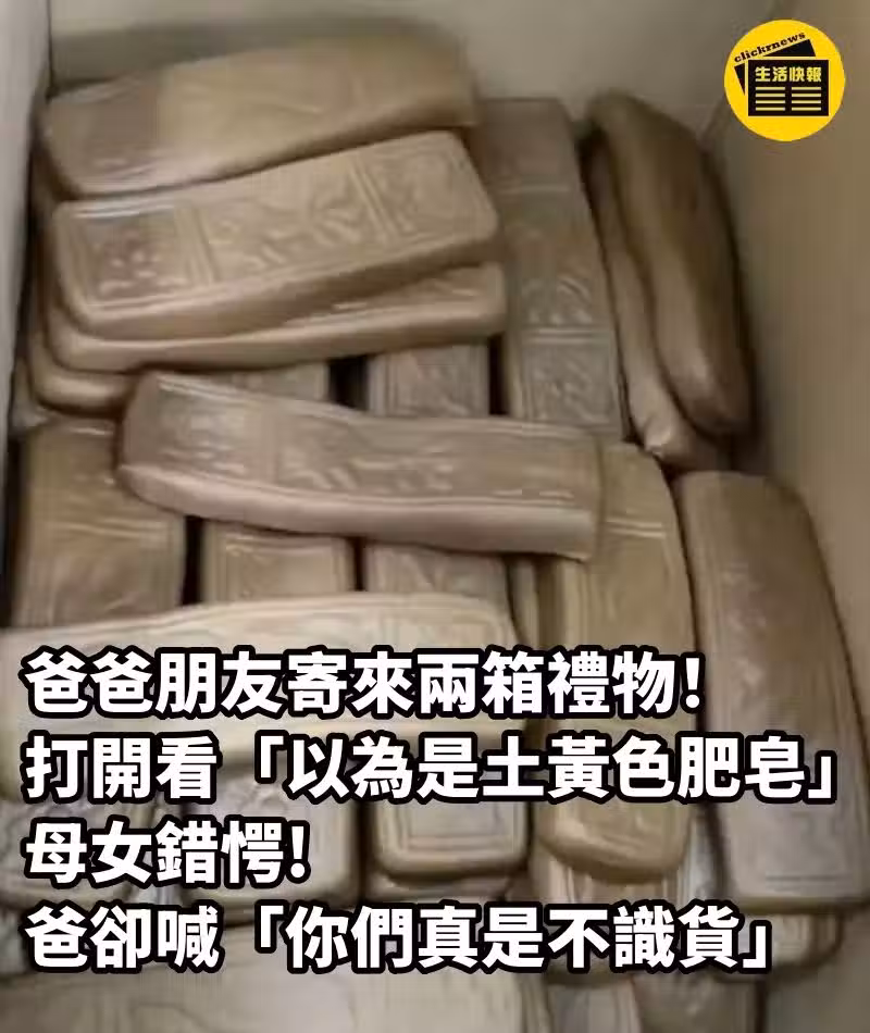 爸爸朋友寄來兩箱禮物!打開看「以為是土黃色肥皂」母女錯愕 爸卻喊 「你們真是不識貨」