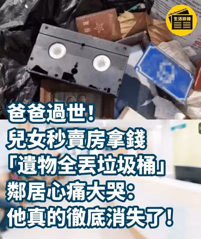 爸爸過世!兒女秒賣房拿錢「遺物全丟垃圾桶」,鄰居心痛大哭:他真的徹底消失了