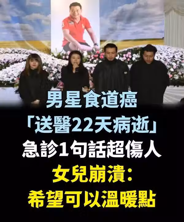 老男星食道癌「送醫22天病逝」!急診1句話超傷人 女兒崩潰:希望可以溫暖點