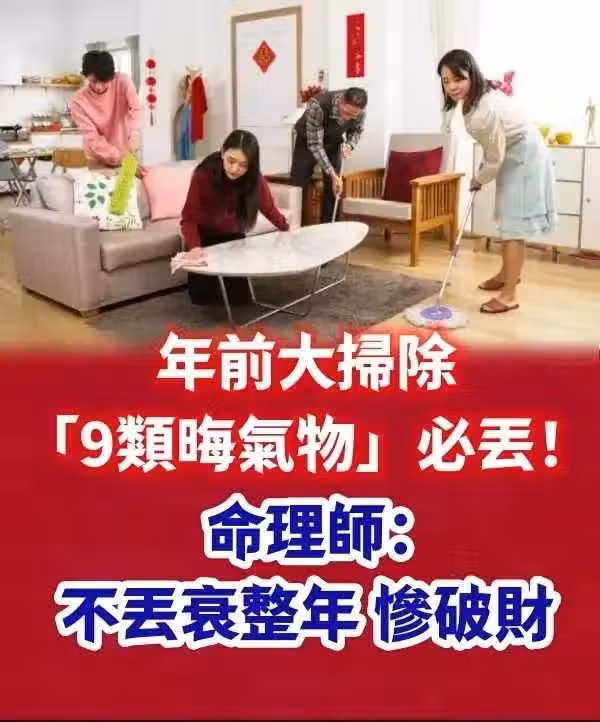 命理師楊登嵙特別提醒,年前大掃除家中有9類「晦氣物品」一定要丟棄,不丟恐怕衰整年,破財又傷運。