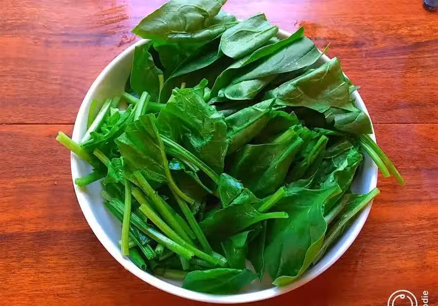 菠菜,菠菜清洗乾淨,切成段備用。