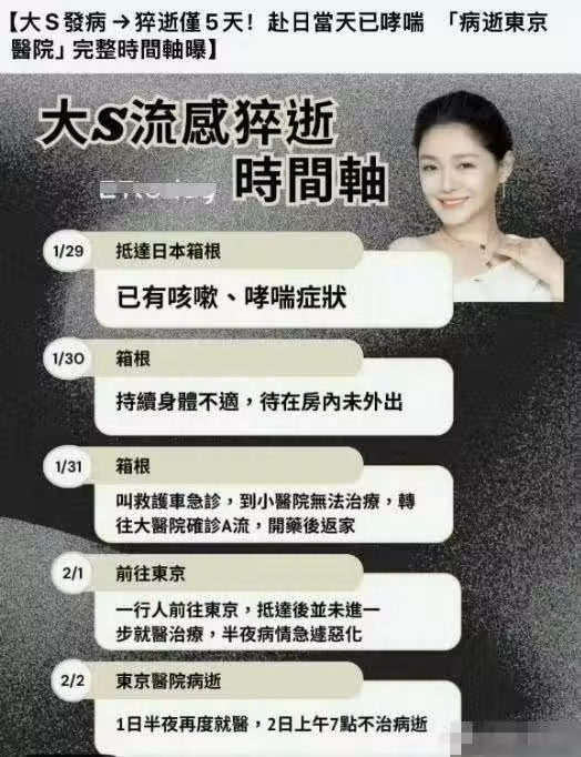 據了解,大S在前往日本的時候便患上了流感,但具俊曄對此並沒有實質性的行動,如果此事放在汪小菲身上,可能會拋棄一切,更不用說所謂的「往返機票」,肯定會讓大S前往醫院治療。