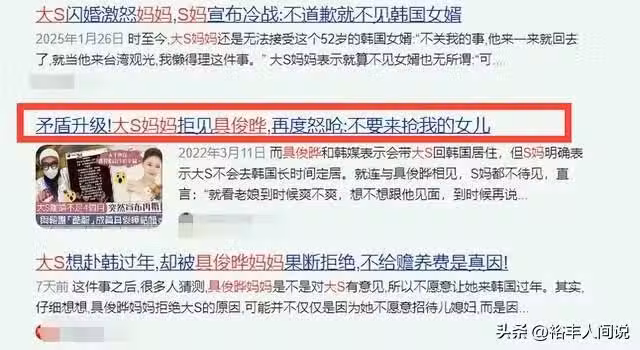 猶記得,當初大S官宣與具俊曄戀情的時候,大S媽媽是極力反對的,而且還表示不想見到具俊曄,不要來搶我的女兒。