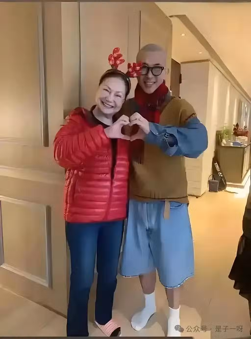 誰家好人跟新女婿合影互抱還比心啊我的天!我都沒見大S跟光頭拍過這麼開心的照片。 這是S媽面對汪小菲父親的肢體語言和神情,汪小菲爸爸尷尬的不行,想躲都不好意思躲: