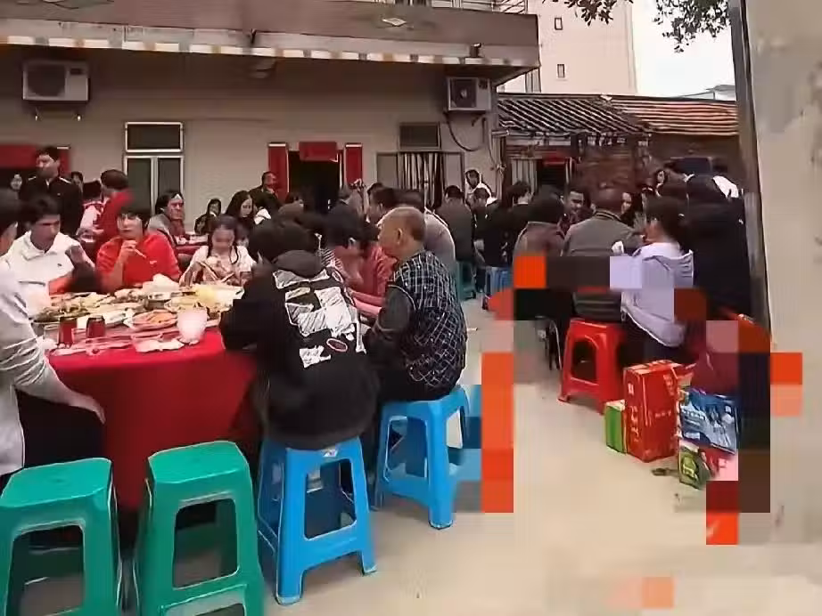 來全紅嬋家裡的賓客,都準備了自己的禮品。可以看到座位的下方,都是賓客們搬過來的禮品。大家聚在一起吃飯,好不熱鬧。