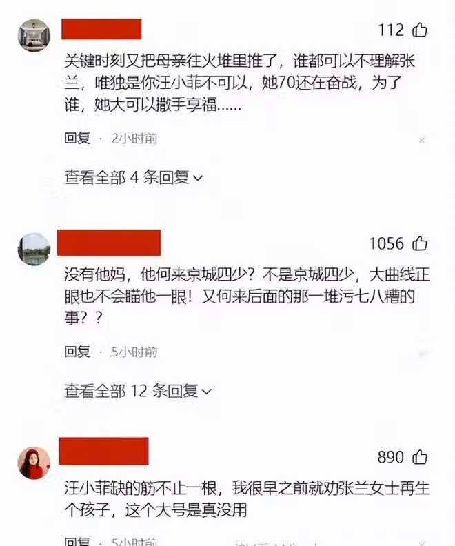 有網友表示道,真正對汪小菲實心實意的人只有其母親張蘭,