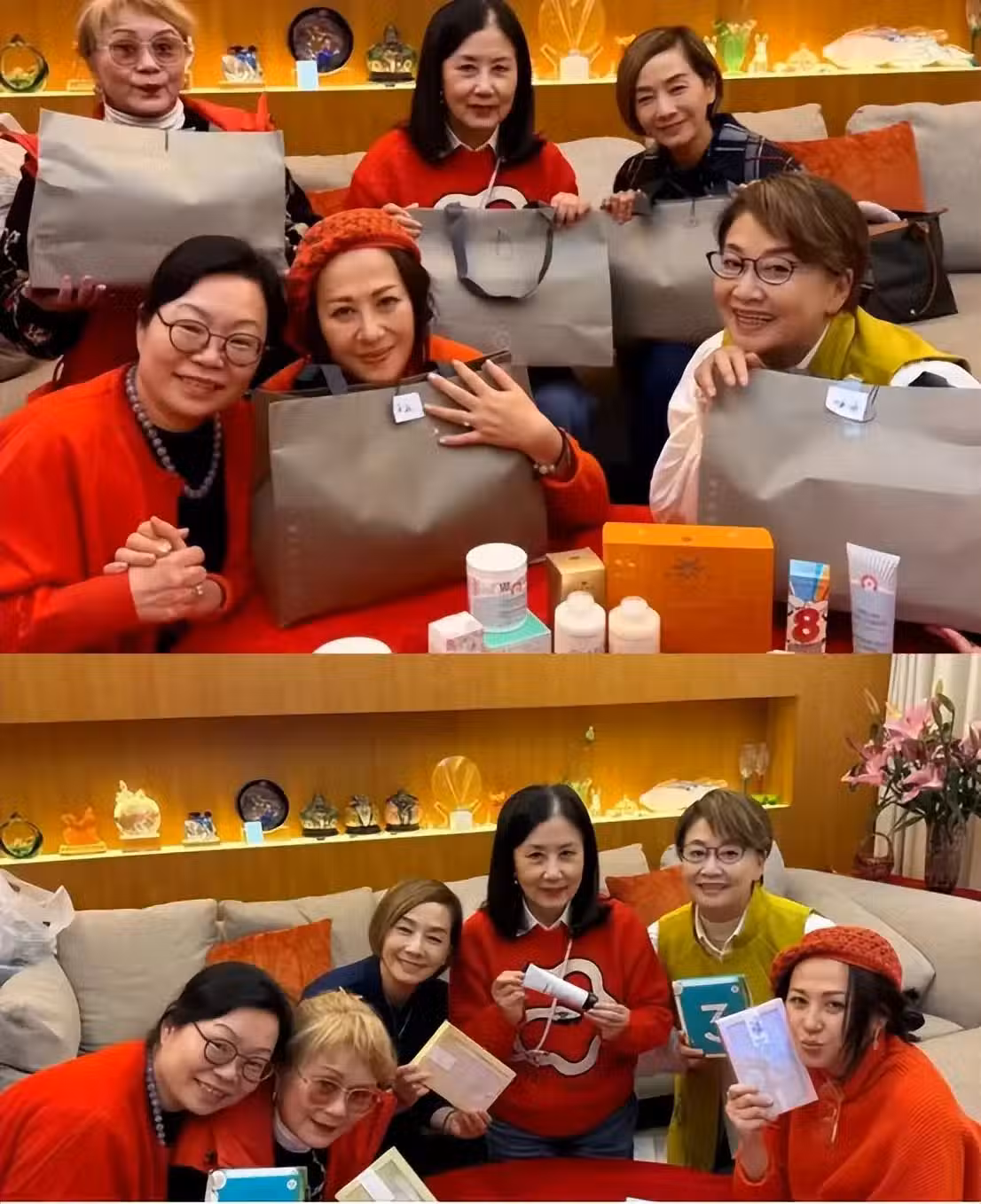從汪明荃曬出的視頻及多張照片中可見,朋友們帶來的拜年禮物非常多,多到一個桌子都擺不下,而且品類很多,除了衣服還有護膚品之類。