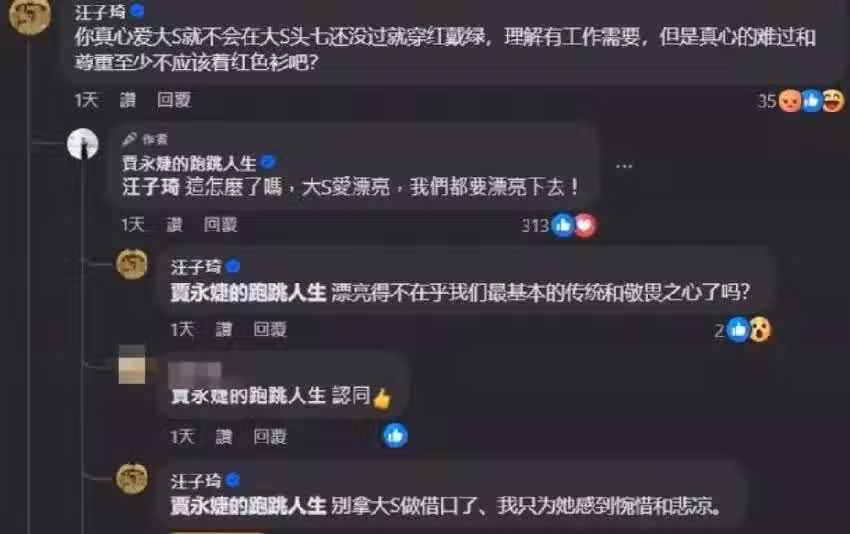 對於賈永婕穿紅衣服工作,很多網友看不下去,認為她這是對大S得不尊重。