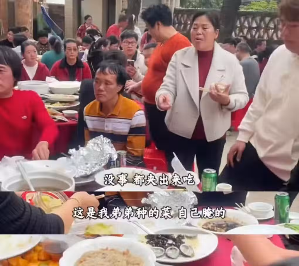 全爸,看著站在一旁邊吃飯,邊招呼的全媽,立馬來了一句「泥媽,你坐下來吃,我招待客人就好了」。