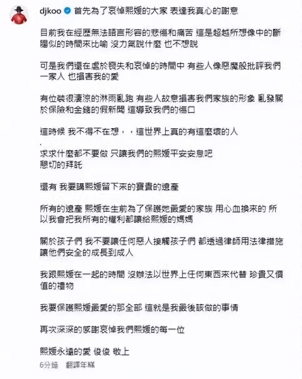 這份回應可以說悲痛而真切,不管他在講什麼事情,但他的中心始終都是他和大S之間的愛情。