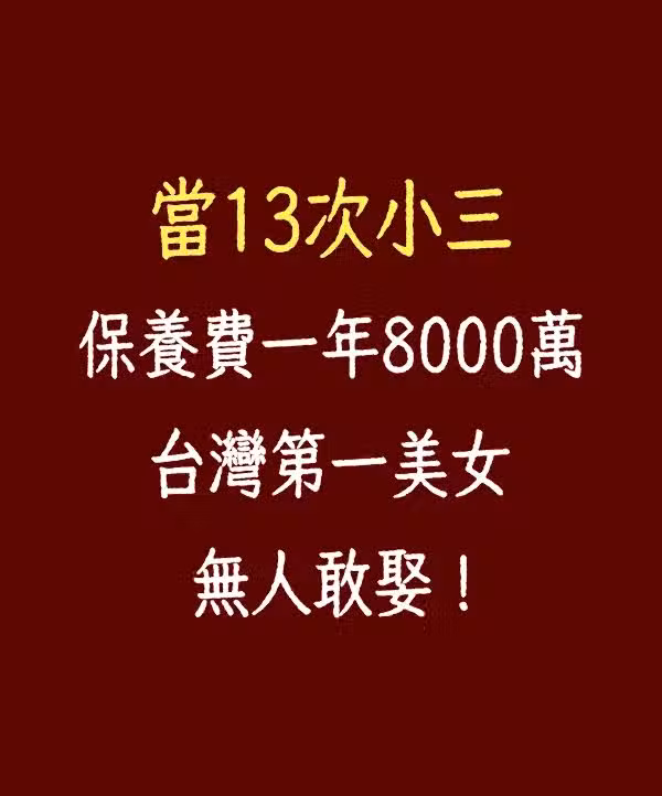 當13次小三,保養費一年8000萬台幣,台灣第一美女無人敢娶!