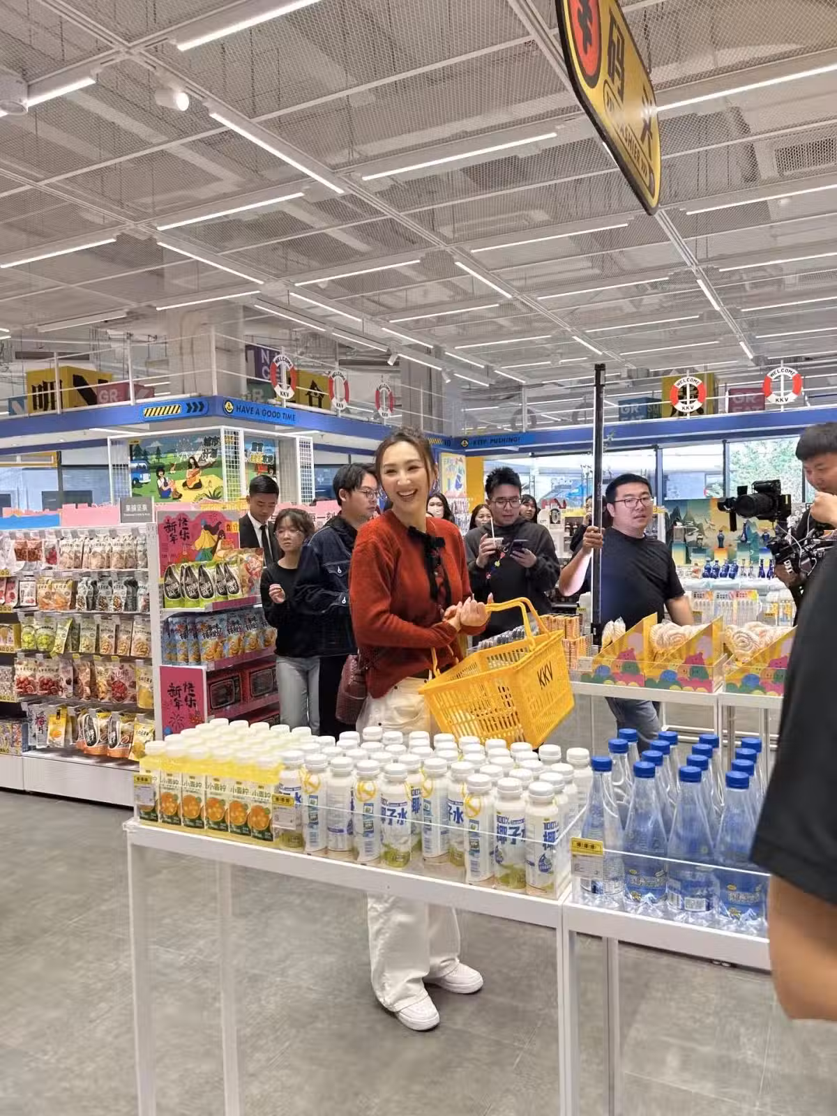對於被圍觀,她一點也沒有生氣,也沒有因此而驚慌,大大方方的,拿了一個購物籃,很開心地在店裡挑選商品。