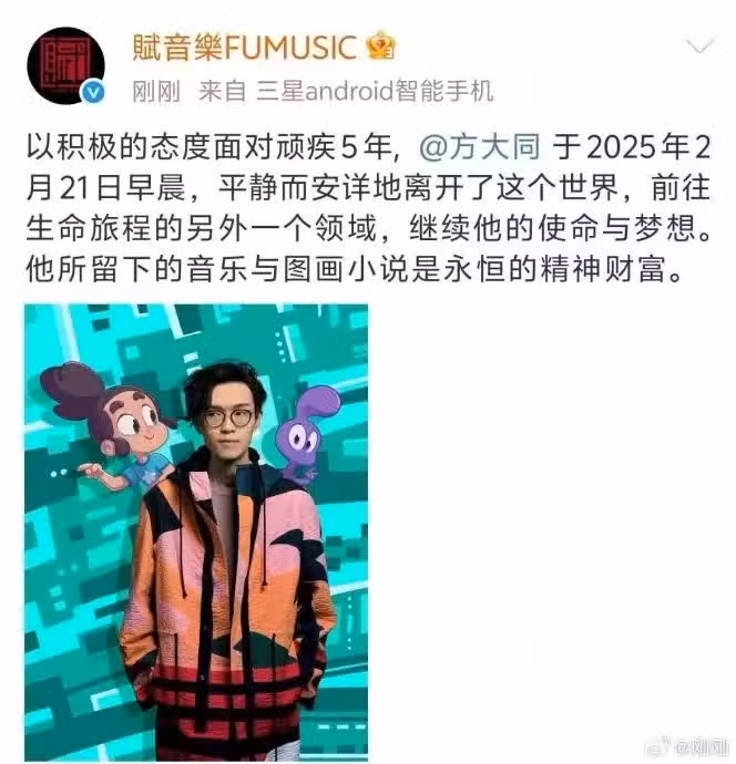 方大同所屬公司證實死訊。(微博截圖)