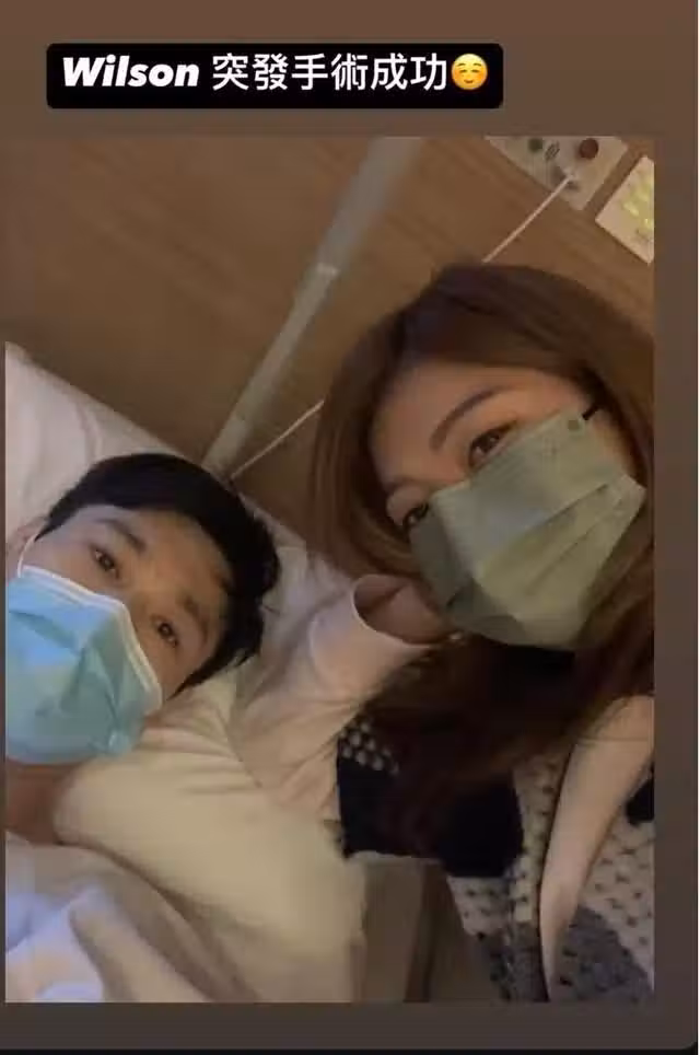 在今年情人節(14日),邱芷微貼出陳志忠躺在病床的相片並說:「Wilson突發手術成功。