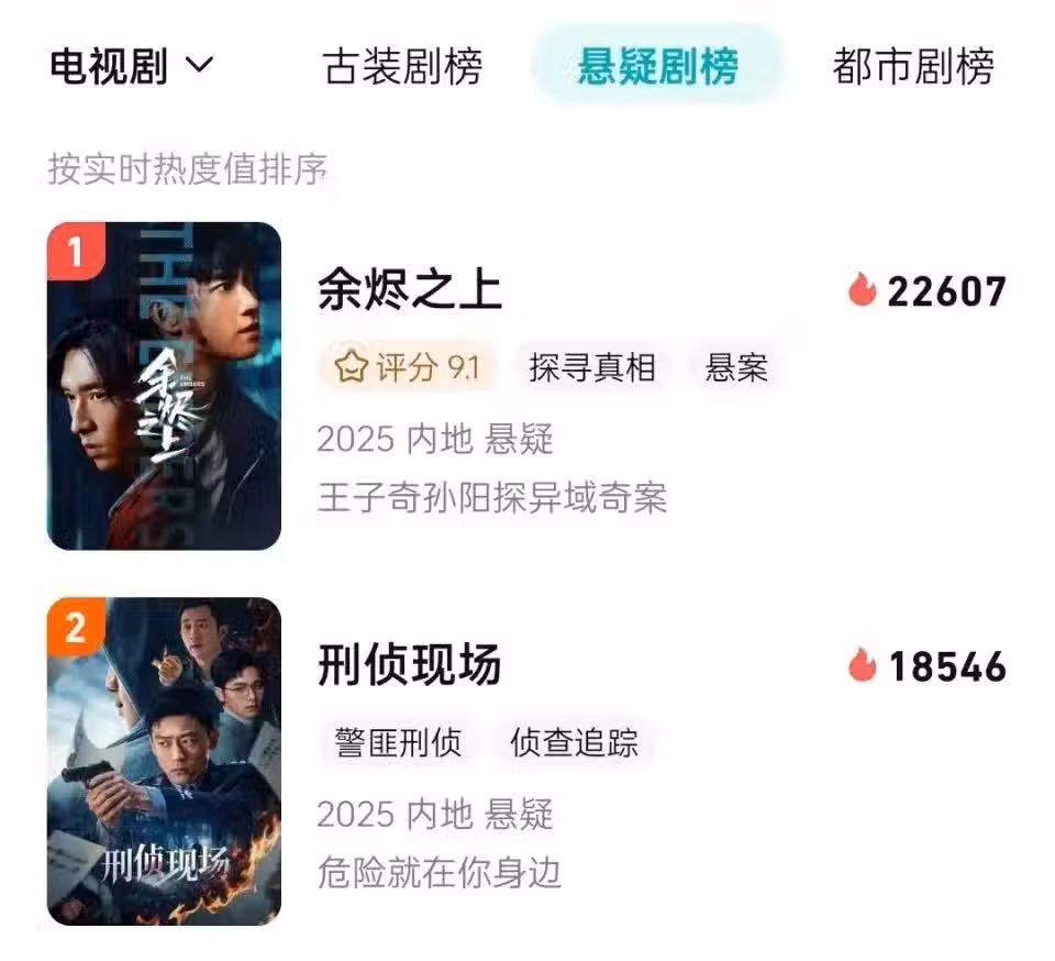 該劇僅僅播出6集,便衝上平台熱度榜前二,並憑藉誘人的劇情和大尺度的案件,為沉寂已久的刑偵題材注入了一劑「強心針」。