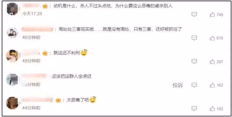 不少網友看到李威參與虐待暴行後怒火重重,不懂李威的行為動機,為什麼要這麼惡毒的虐待蔡女士。整起案件的情節也被吐槽簡直是現實版的《周處除三害》,雖然現實沒有周處但有法律,三害被抓了。而網友對李威本人的厭惡則到達了頂峰,希望他能被判刑,也希望他出演的影視作品儘快下架。