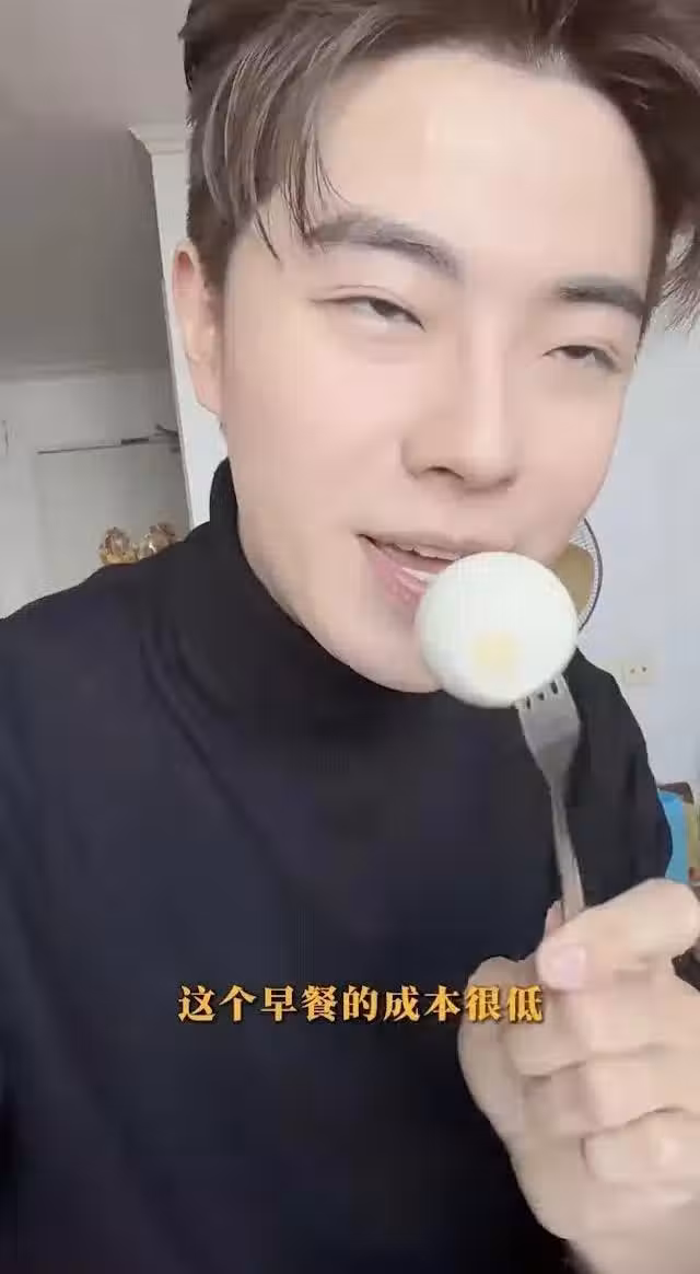 日前,他拍了影片放到社交平台,分享他一天的兼職生活。早上他在家用早餐,只見他喝一杯檸檬水加兩個雞蛋,更笑稱一元一個蛋,非常節儉。