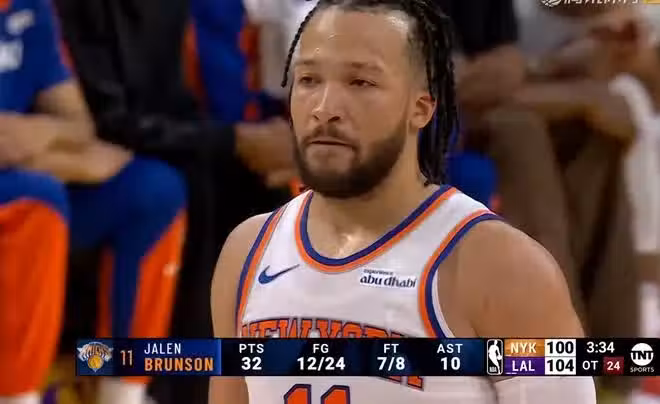 更難受的是,湖人打尼克斯這場球,場上表現最好的兩位超級巨星,都是附加賽球隊獨行俠白送出去的。先給尼克斯白送布倫森,他暴砍39+10,單場39分是全場的最高分,當初獨行俠連5500萬4年合同都不願給他,布倫森一氣之下走人了。