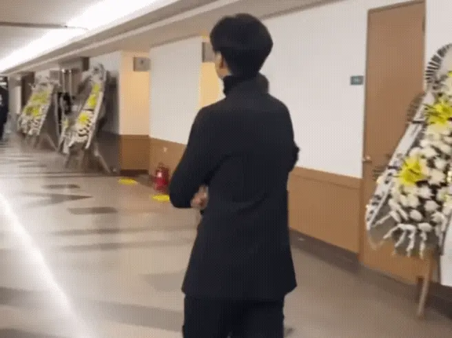 穿著黑色衣服的他眼睛紅腫,一路低頭拒絕讓媒體拍攝,在金賽綜黌照前站久留,最後匆匆離去。