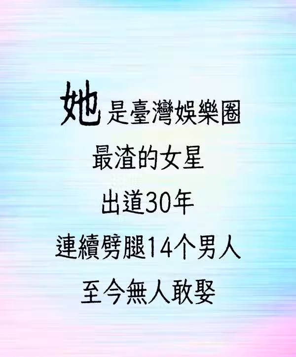 她是台灣娛樂圈最渣的女星,出道30年連續劈腿14個男人,至今無人敢娶