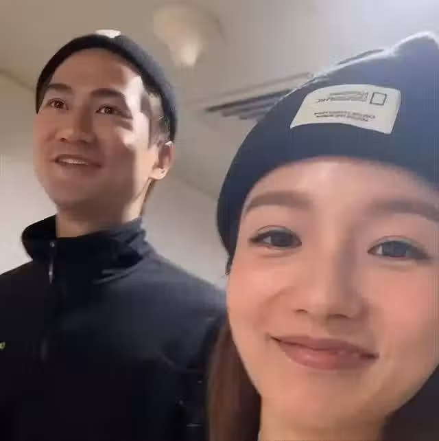 反而都選擇了比較休閒和平常的服裝,穿著比較隨意。不過兩人特意挑選了一對情侶帽子,看上去非常甜蜜。