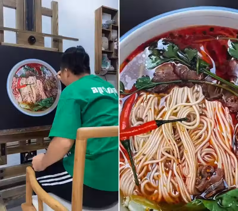 超寫實食物繪畫家 把牛肉麵、大白菜等等畫得栩栩如生