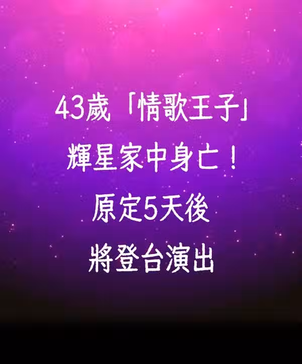 43歲「情歌王子」輝星陳屍家中! 原定5天後將登台演出!