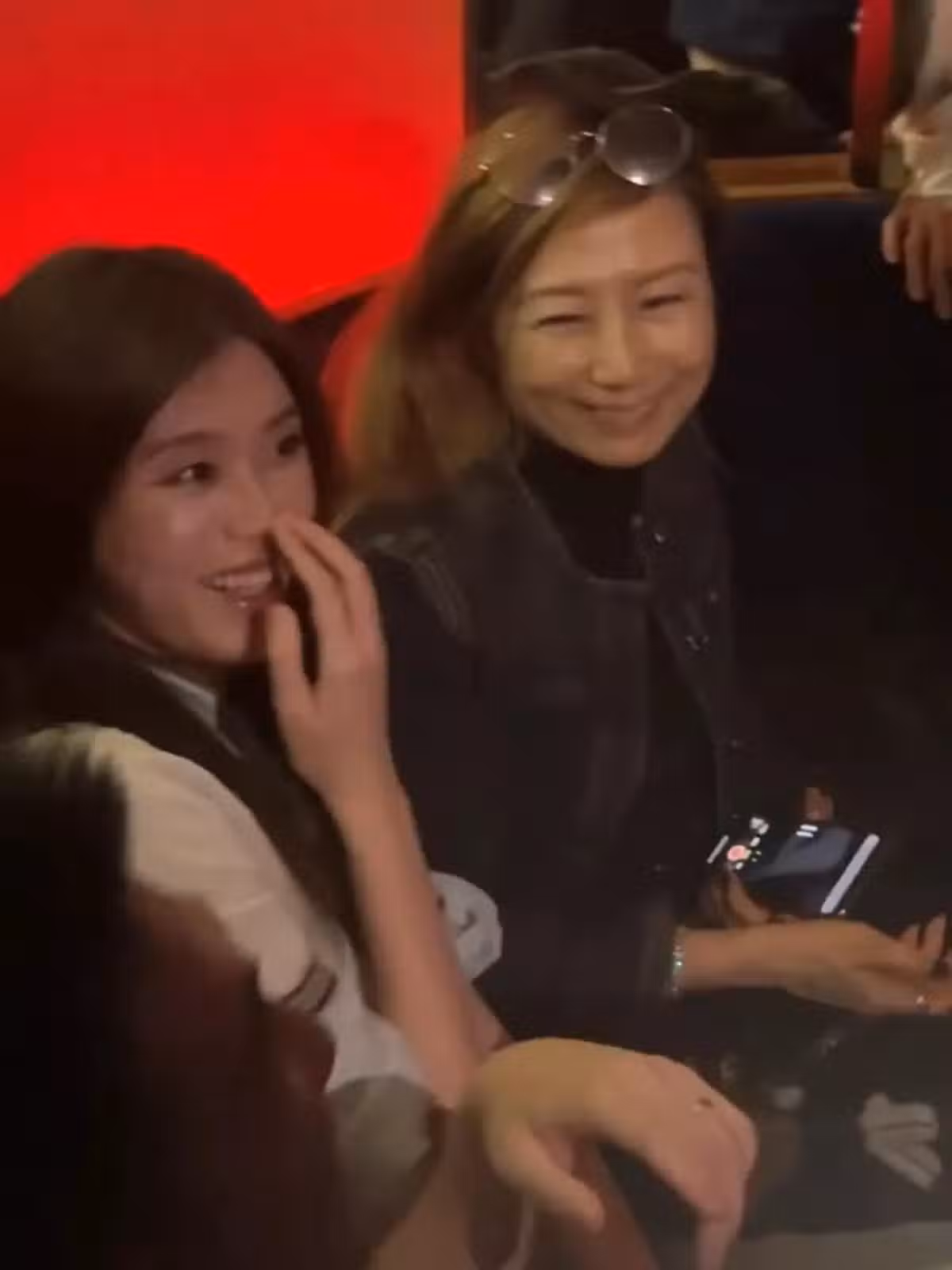坐在王嘉爾媽媽旁邊的就是奚夢瑤何猷君夫婦倆,奚夢瑤還不時跟王媽媽聊天,可見兩人跟王嘉爾的關係是真的很好。