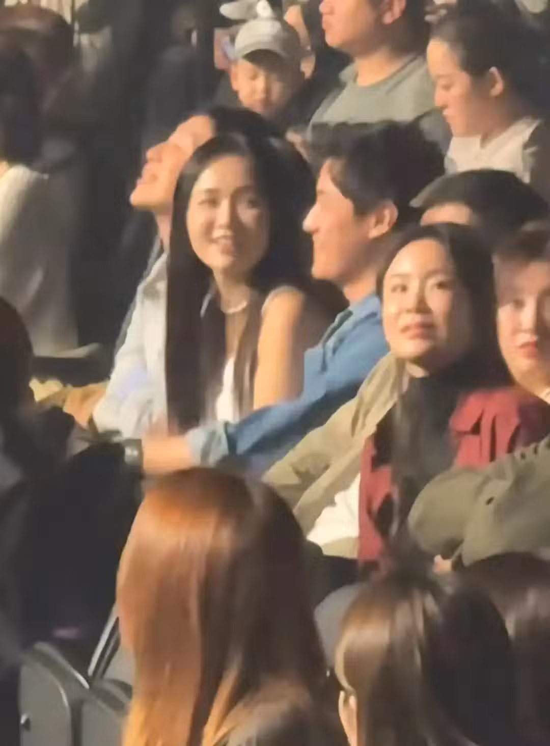 46歲陳喬恩在澳門,和老公看演唱會,穿了一件背心,身材豐腴好多