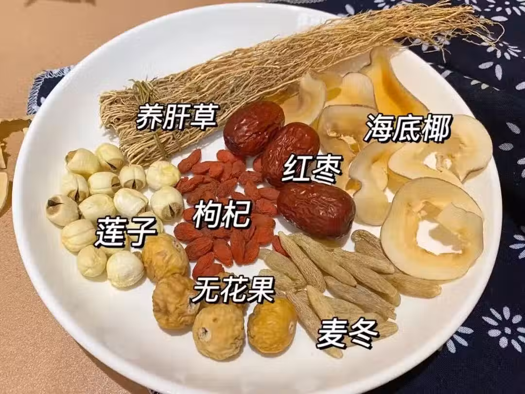 食材:養肝草、麥冬,蓮子、海底椰、無花果、枸杞、紅棗,瘦肉