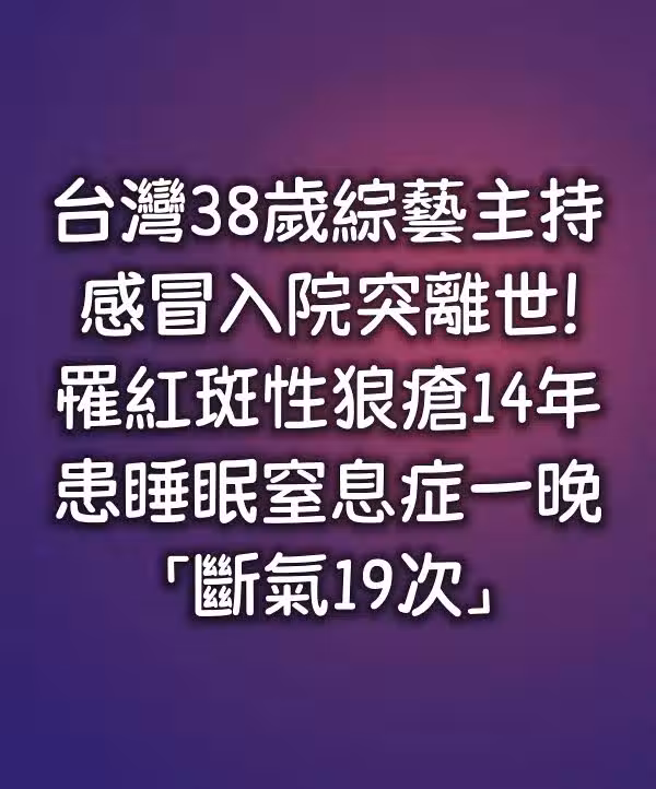 感冒入院竟成最後一程 台灣38歲主持人驟逝!14年病痛纏身