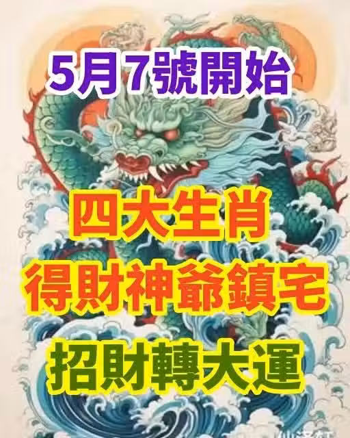 5月7號開始,四大生肖得財神爺鎮宅,招財轉大運.