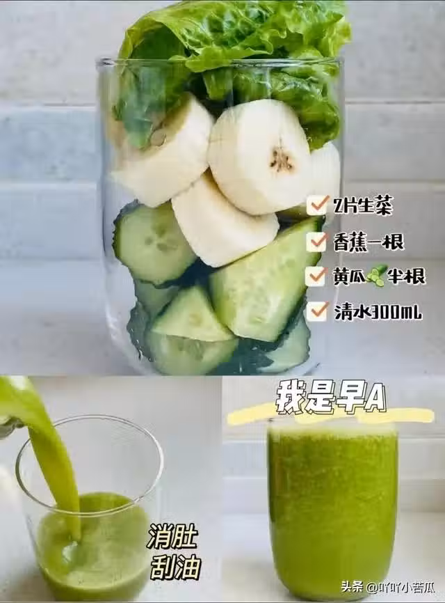 食材:半根黃瓜+1根香蕉+2片生菜+300ml水。
