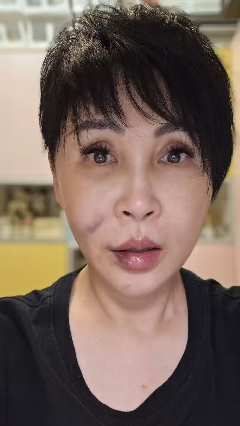 這次意外讓她昏迷約半小時,事後她曬出傷勢照片,透露:「再醒來已是6:10,這時左臉傳來一股熱辣滾燙的脹痛、脖子卡住了、膝蓋破皮紅腫,一照鏡子,差點沒被自己嚇死!」起來先是吐出口中凝固的血塊,再拿兩顆止痛藥吞下肚。