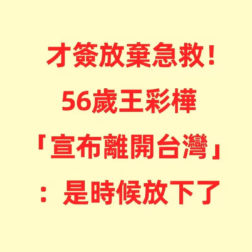 才簽放棄急救!56歲王彩樺「宣布離開台灣」: 是時候放下了