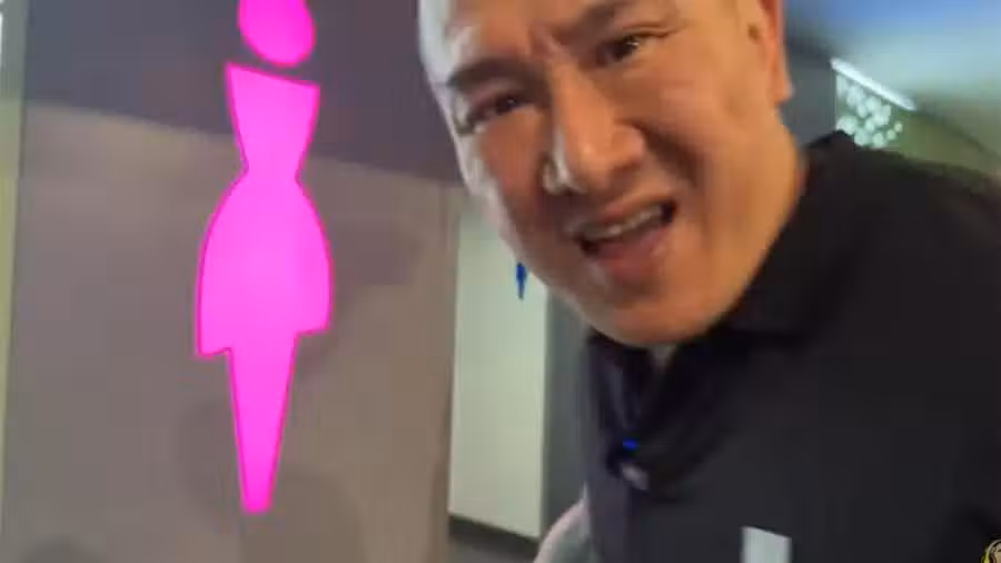 陳之漢驚呼機場廁所有門。(圖/翻攝自YT@Notorious_3cm)