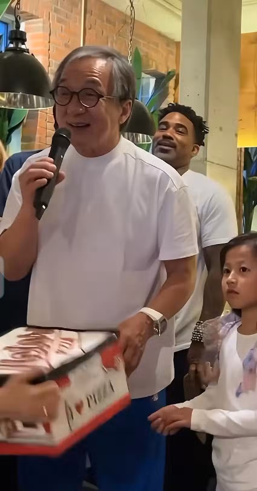 71歲成龍吃火鍋被拍,滿頭白髮戴著老花鏡,胃口不錯,點了好多肉