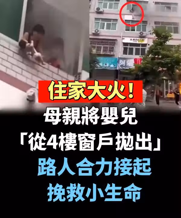 昨日一處民宅發生火警,母親不顧自己逃生,選擇相信一樓路人們合力撐起的一塊布,將她最愛的寶寶扔了下去!所幸路人合立接起寶寶,救了一命。
