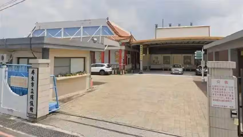 近日早晚溫差變動大,導致許多心血管疾病的患者猝死案例暴增,屏東市立殯儀館面臨超負荷的情形,大量遺體被送來安置,禮儀廳也爆滿,殯葬業者緊急搭起白帳篷,原地建起一個「臨時靈堂」。 屏東市立殯儀館。