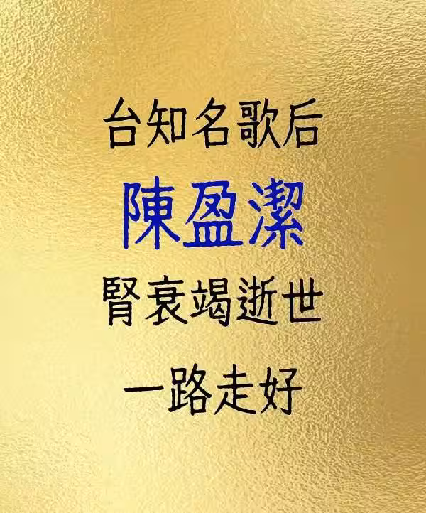 台知名歌后陳盈潔 腎衰竭逝世 一路走好.