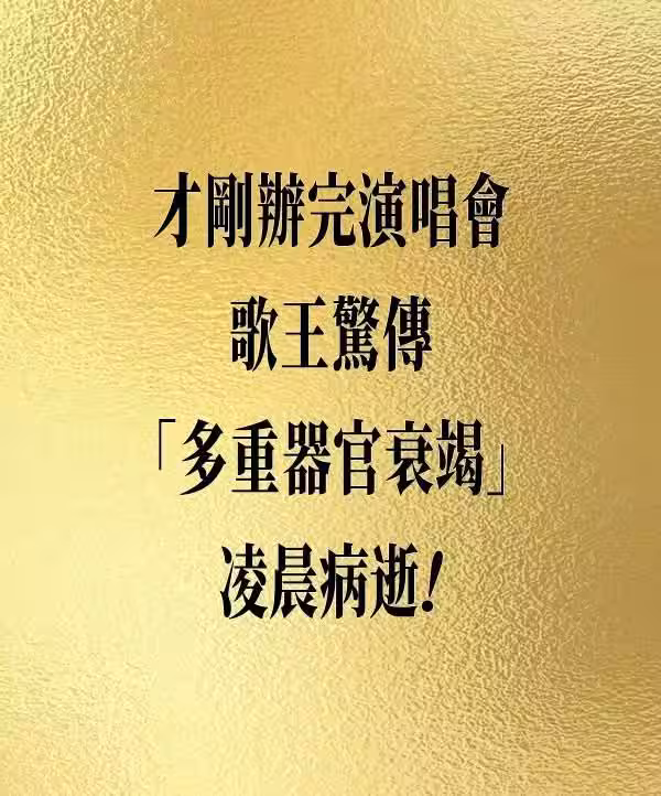 才剛辦完演唱會 歌王驚傳「多重器官衰竭」凌晨病逝!